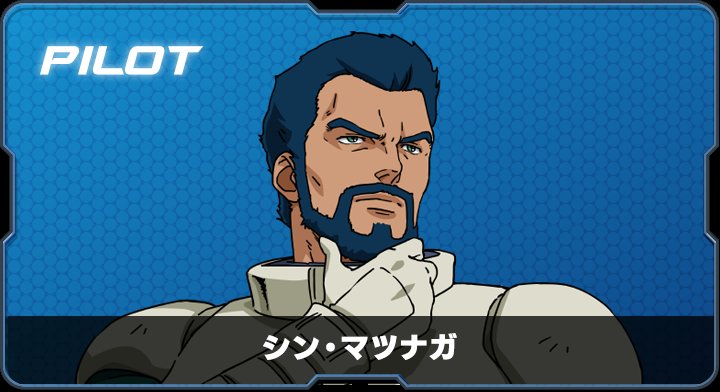 シン・マツナガはガンダムシリーズに登場するジオン公国軍のエースパイロットである。宇宙世紀0079年に地球連邦とジオン公国との間で起きた、「一年戦争」の直前にジオン公国軍に入隊。その後は瞬く間に昇進し、宇宙要塞ソロモン防衛の要として活躍する。白のパーソナルカラーと「白狼」の異名で知られ、上官ドズル・ザビを兄のように慕い忠義を尽くした。ソロモン攻略戦の直前に召喚されたため、主君の最期には立ち会えずサイド3で男泣きしたと伝えられる。