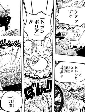 ワノ国編の鬼ヶ島での最終決戦で、自分達をしつこく追いかけてくる百獣海賊団の幹部”飛び六胞”の一人・ページワンに使用した。