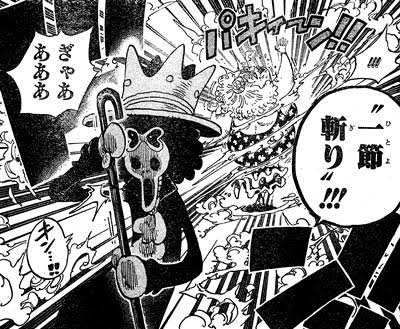 「スリラーバーク編」で、ブルックの影が入っていたゾンビのリューマは、突き技を衝撃波の様に飛ばす事が可能。