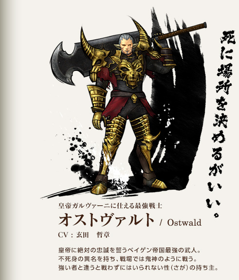 皇帝ガルヴァーニに絶対の忠誠を誓う最強の戦士。不死身の異名を持つ。