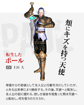 真面目な性格をした常識人。帝国からの密偵として主人公と行動を共にしていた。しかしその後、死亡する。