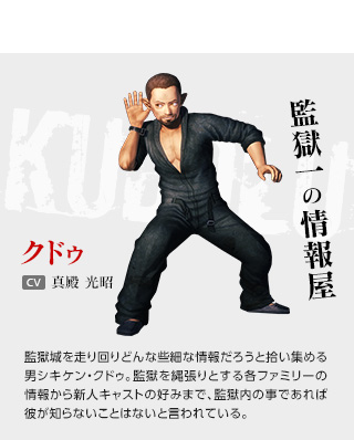 監獄一の情報屋。監獄城を走り回り、どんな些細な情報でも拾い集める男。