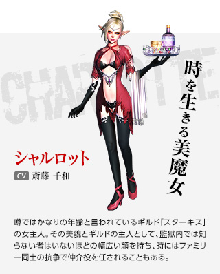その後、ギルド「スターキス」で夜の蝶として主人公の前に現れる。