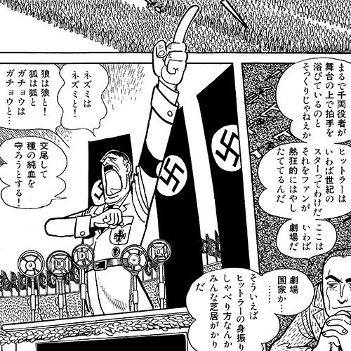 『アドルフに告ぐ』とは、手塚治虫による漫画作品。1983年から1985年にかけて『週刊文春』誌上で連載された。戦争と人種差別をテーマにした大人向け漫画で、手塚の戦争観が色濃く反映されている。主人公で狂言回しを務める峠草平と、ヒットラー、カウフマン、カミルという、同年代を生きた3人の「アドルフ」の人生を描き、ヒットラーの出生の秘密を綴った文書をめぐる陰謀を軸に物語は展開していく。複数回の舞台化も行われ、好評を集めている。