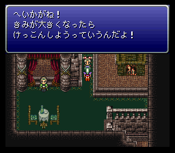 リルムを口説こうとするが、リルムが10歳だと知り思いとどまるエドガー