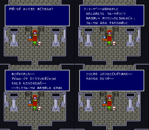 ゾットの塔攻略後にバロンにあるローザの家に行くと母親(左)の台詞が変化している。