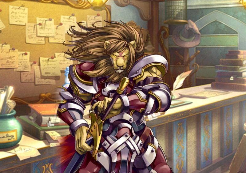 港町トルリッカのギルドマスター。ライオン型の獣人。真面目な性格で何事もきっちりこなすが、お茶目な一面もある。ギルドに務めて以来、30年間ほぼ休みを取らずに働き続けている。独身の次男。