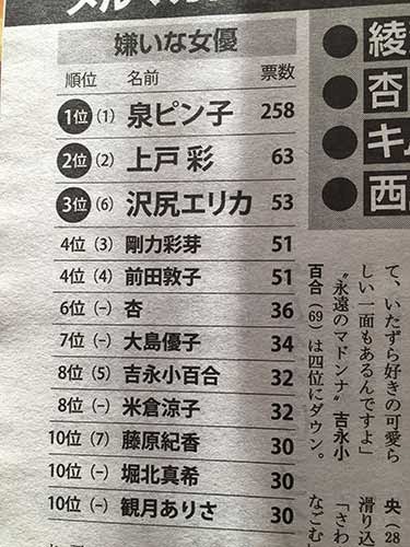 好きな俳優・嫌いな俳優ランキング2015年(週刊文春)