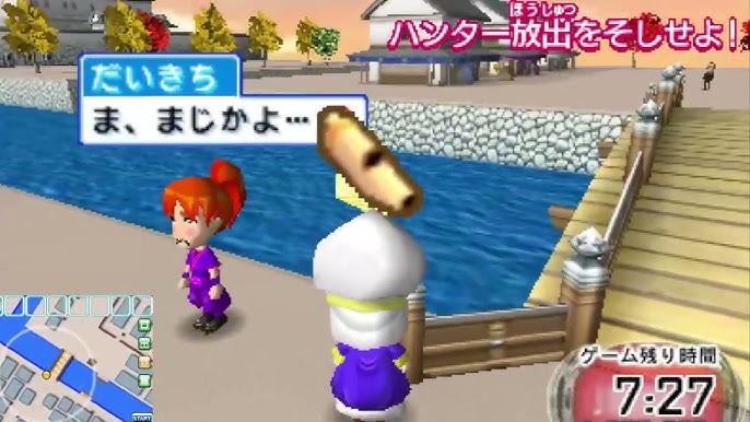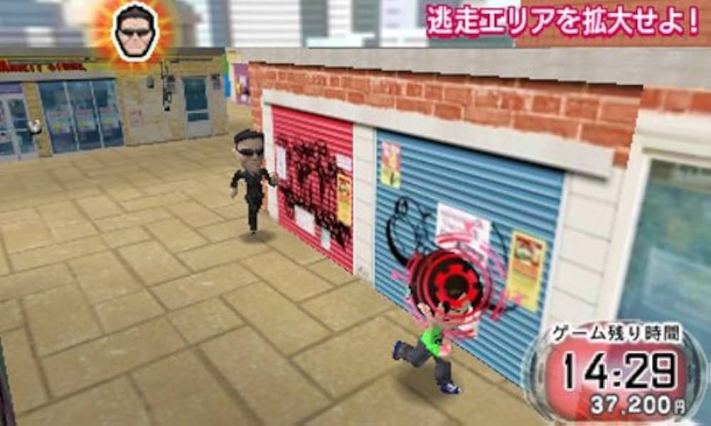 『逃走中 史上最強のハンターたちからにげきれ!』とは、バラエティ番組『逃走中』のコンセプトを再現した2012年発売の3DS用アクションゲーム。ステージは「シティ」、「おとぎの国」、「江戸」など番組でおなじみの場所や、「宇宙」、「ホラータウン」などゲームオリジナルの場所が全部で10ステージ。ノーマルコース、ハードコース、通信機能を使った最大4人同時プレイ可能なステージなどが用意されている。「ミッション」をこなしてゲームを有利に進めつつ、ハンター達の追跡をかわし、逃走成功を目指すゲームである。