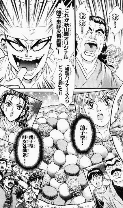 勝負の課題は「酢豚」で、フルーツたっぷりの酢豚を作った蟇目に対し、柚子とシメジの相性の良さを生かした酢豚を作って対抗する醤。勝負の結果は引き分けとなったが、さらに蟇目を挑発した醤は左腕も折られてしまった上に、再び料理勝負をすることが決まった。