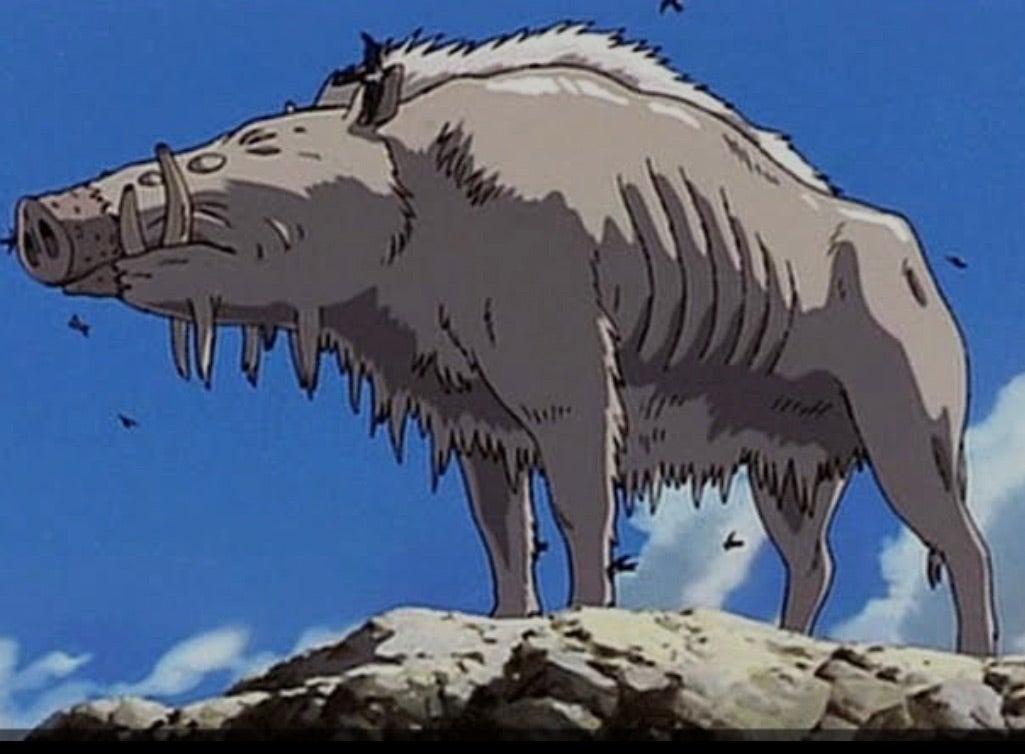 終盤に猪の一族を引き連れてシシ神の首を取ろうとする人間達と戦うも重傷を負い、錯乱状態となりタタリ神へと変貌を遂げていくが、最期はタタリ神になる前にシシ神に命を吸い取られた。