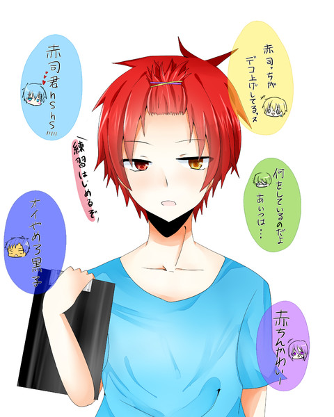 赤司征十郎(あかしせいじゅうろう)とは、『黒子のバスケ』の登場人物で「開闢の帝王」洛山高校を率いる1年生キャプテン。帝光中学時代も「キセキの世代」を率いて1年時からキャプテンを務めて全中3連覇に導いた。「天帝の眼(エンペラーアイ)」を使ってオフェンスでは相手の足を崩す「アンクルブレイク」、ディフェンスではスティールに長けており、攻守で誰よりも抜きん出ている。中学時代に紫原敦との1 on 1に敗れかけた際に別人格の赤司が現れ、穏やかだった性格がより圧倒的で好戦的になった。