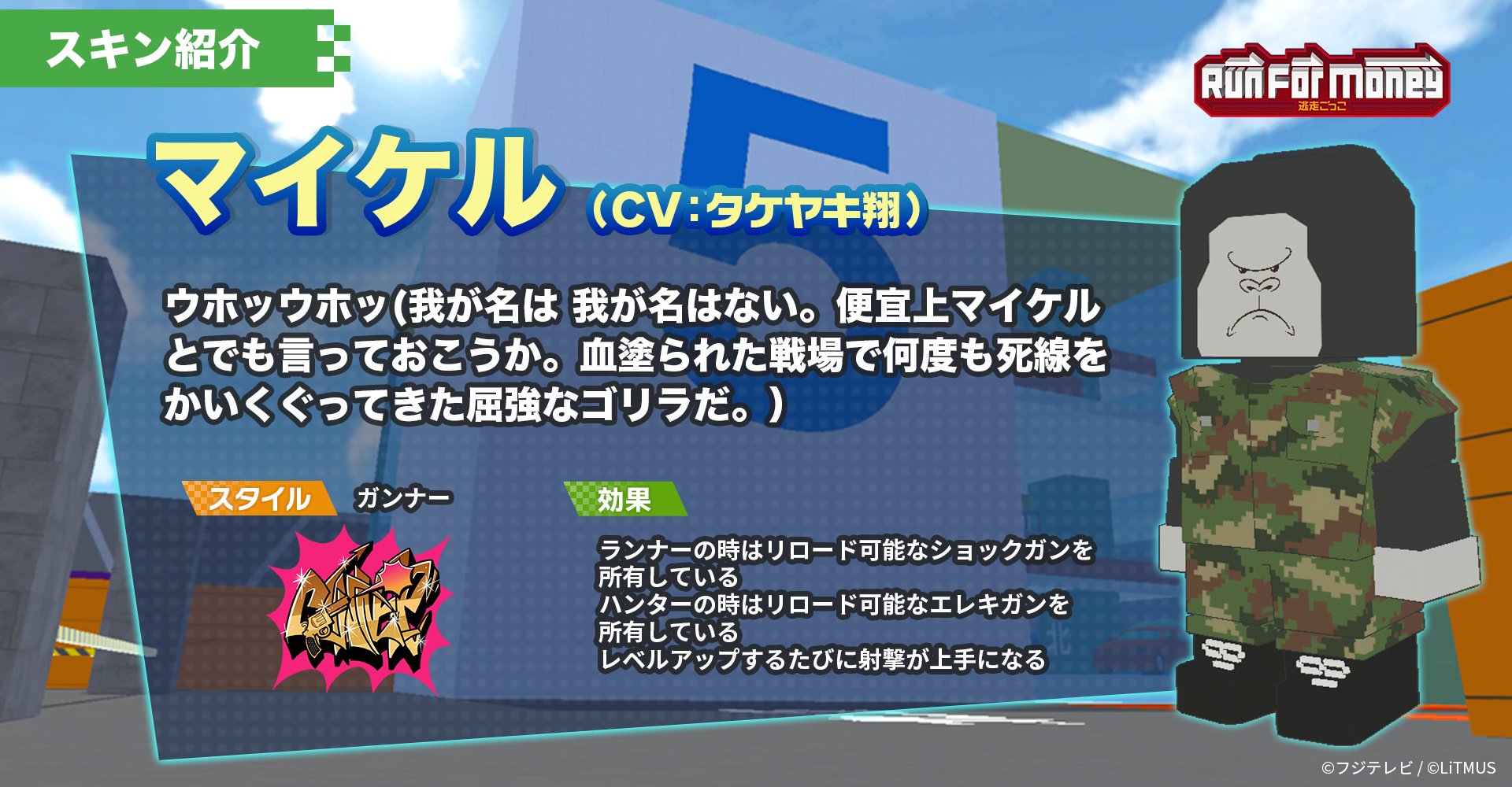 『Run For Money ~逃走ごっこ~』とは、LiTMUSが2022年4月にサービスを開始したスマホ向け非対称型対戦アクションゲームである。人気番組『逃走中』とゲーム『脱獄ごっこ』がコラボした非対称型オンラインマルチアクション対戦ゲームである。