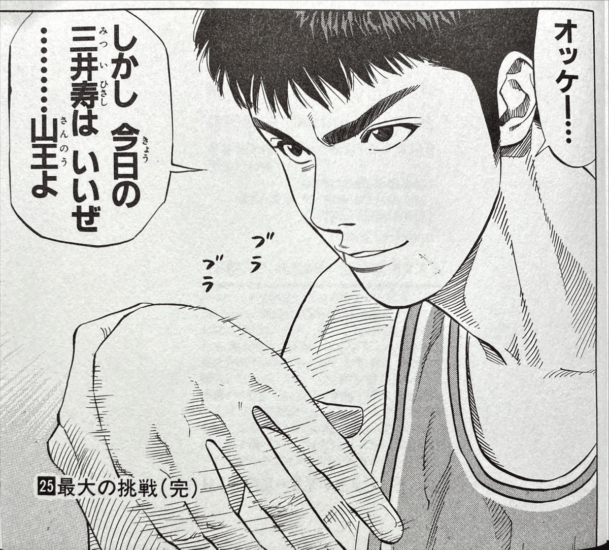 山王との試合開始直後、いきなりスリーポイントを決めた三井は「しかし今日の三井寿はいいぜ…山王よ」と呟く。直前までの緊張はどこへやら、大舞台でしっかりと奇襲を成功させた三井に、多くのファンが熱狂した。