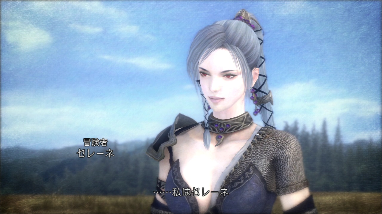 ゼネテス、ツェラシェルと組んで冒険を繰り広げている賞金稼ぎ。黒髪で黒いセクシーな衣装に身を包んだ女性。特殊な形状の武器を持っている。