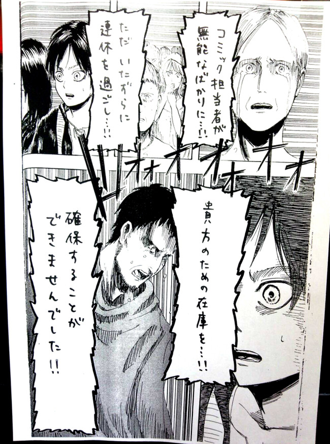 『進撃の巨人』は、諫山創原作の漫画である。少年漫画雑誌『別冊少年マガジン』で2009年から連載された。突如現れた巨人により人類は滅亡の危機にさらされるが、巨大な壁を建設することで100年間平和を保ってきた。しかしある日超大型巨人が壁を蹴破り、人類は再び巨人の襲来に遭う。巨人に母を捕食された主人公・エレンは、巨人のせん滅を誓って調査兵団に入団する。大迫力の戦闘シーンの合間には、エレンや幼なじみのミカサらをめぐる恋愛要素も描かれている。