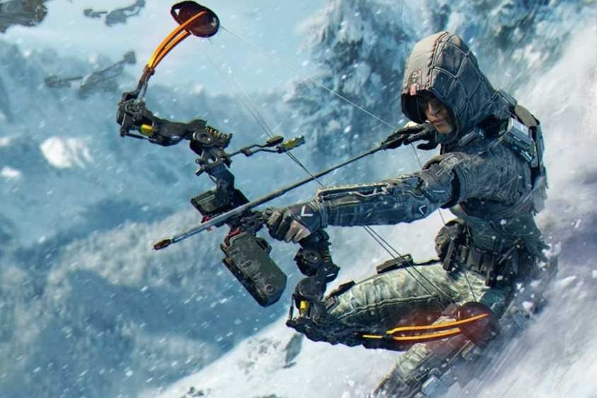 爆発性の矢を放つ弓「スパロー」や、周囲の敵を透過探知する「ビジョンパルス」を使用する女性兵士。