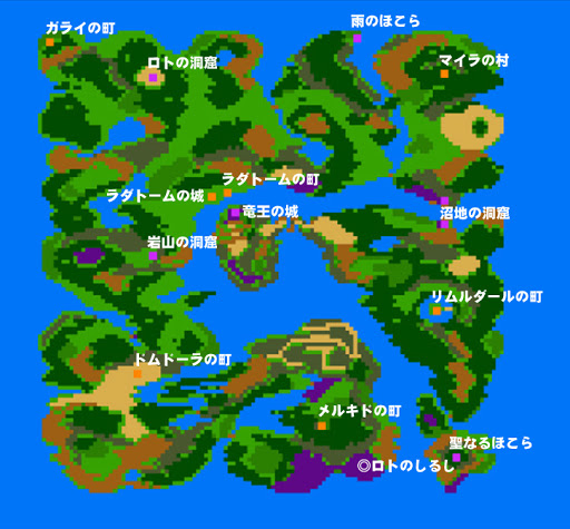 リムルダールの町から南にあるほこら。ロトの印を持ってくるように言われる。周辺にゴールドマンが出現するので、勝てるようになったらここでお金を貯めよう。