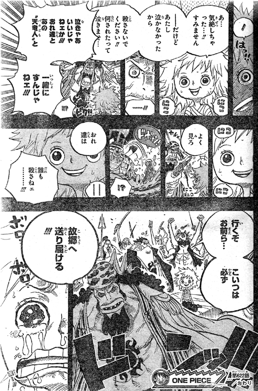 フィッシャー・タイガーにより家族の元にもどされた。ちなみに、フィッシャー・タイガーは世界の「禁止事項」を犯し たった一人で聖地マリージョアを襲撃し奴隷達を救った魚人。ハンコックもこの時救われてる。その後フィッシャー・タイガーは元奴隷の魚人達を連れ「タイヨウの海賊団」を結成し、ジンベエ、アーロン、ハチらを部下にしていた。コアラを返した後、海軍のしゅうげきに会い、フィッシャー・タイガー死す。