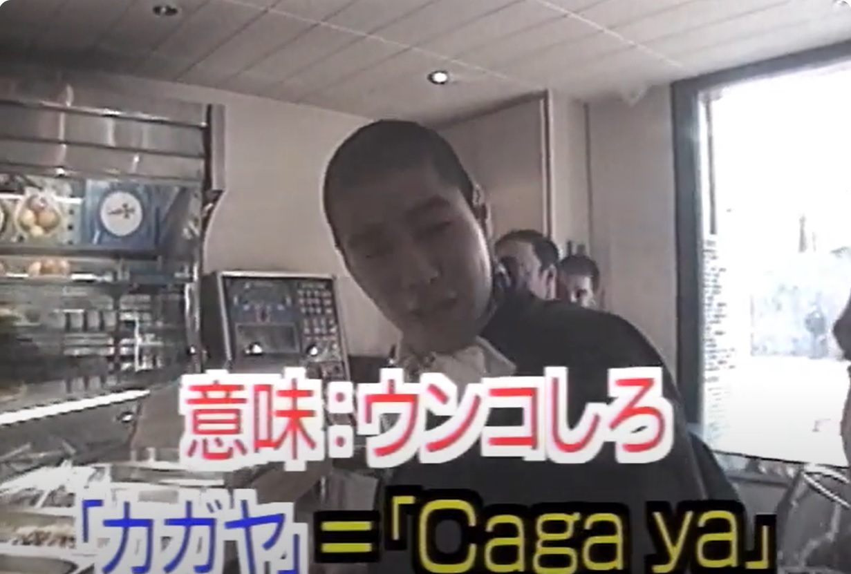「ハウス加賀谷の助っ人シリーズ」で、サグラダファミリアの修復に行ったとき、加賀谷が自己紹介したのを受けて、現地のスタッフが加賀谷に向けて「お前の名前はスペイン語で「ウンコしろ」だな」と言った言葉。(Caga ya!=スペイン語で「大便しろ」の意)