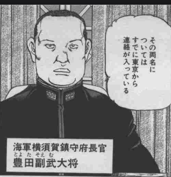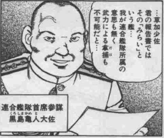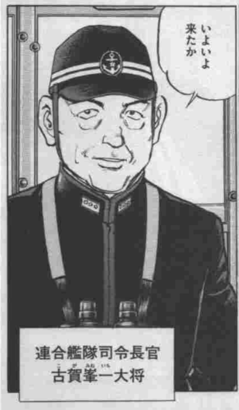 マリアナ戦にて草加より、連合艦隊司令部を大和型戦艦「武蔵」から大淀型軽巡「大淀」に遷すよう促された。その後、自ら「武蔵」に留まろうとする草加を信用し、後を任せる。一方で草加が何かを企んでいる事に勘付いており、それなりの洞察力を持つ。