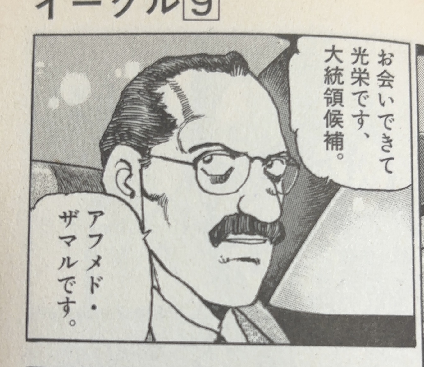 『イーグル』とは、かわぐちかいじの政治漫画である。1998年から2001年まで『ビッグコミック』で連載された。新聞記者城鷹志は、唯一の肉親である母を事故で亡くす。悲しみの中、突如アメリカ大統領選挙候補者の1人ケネスから密着取材を指名された。アメリカに渡った城は、ケネスから自分の子供である事を告げられる。動揺しながらも、彼はアメリカ大統領選挙を戦うケネスの取材を行う。その取材の過程で母親が何者かに暗殺された事に気付く。事件の真相に迫りながら、アメリカの抱える政治的問題が描かれていく。