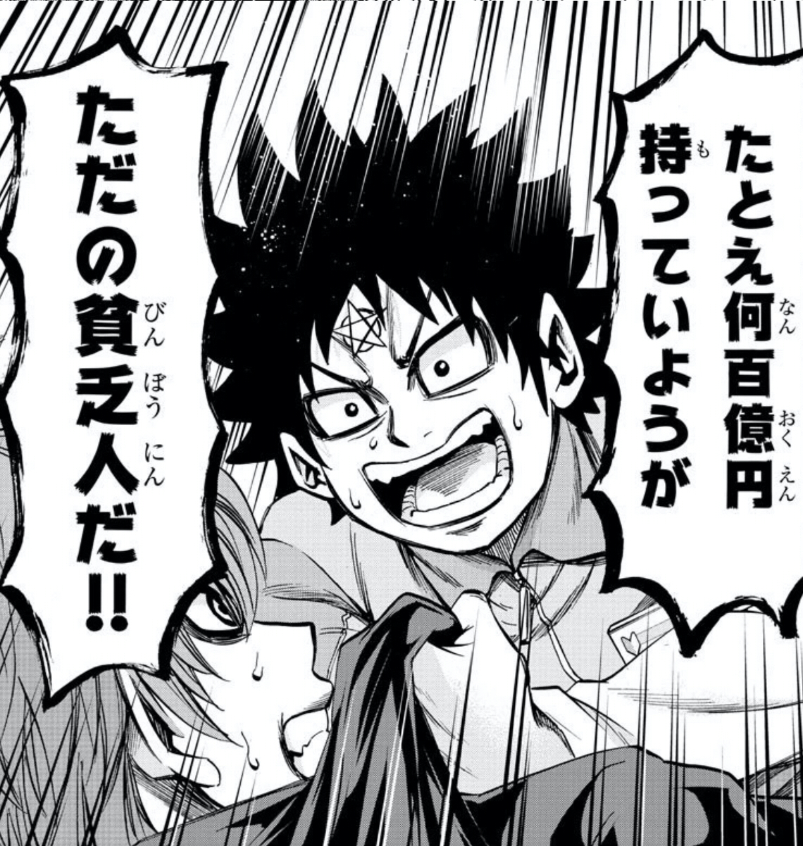 六道の能力が原因で、本来回収するはずだった課長の家族のお金を回収できなかった山吹ミナミを裏切り、ミナミのお金を持ち逃げしようとしている仲間の仁。六道は「人は200円のチキン一個でも幸せになれるんだ!!」と怒りを露わにする。