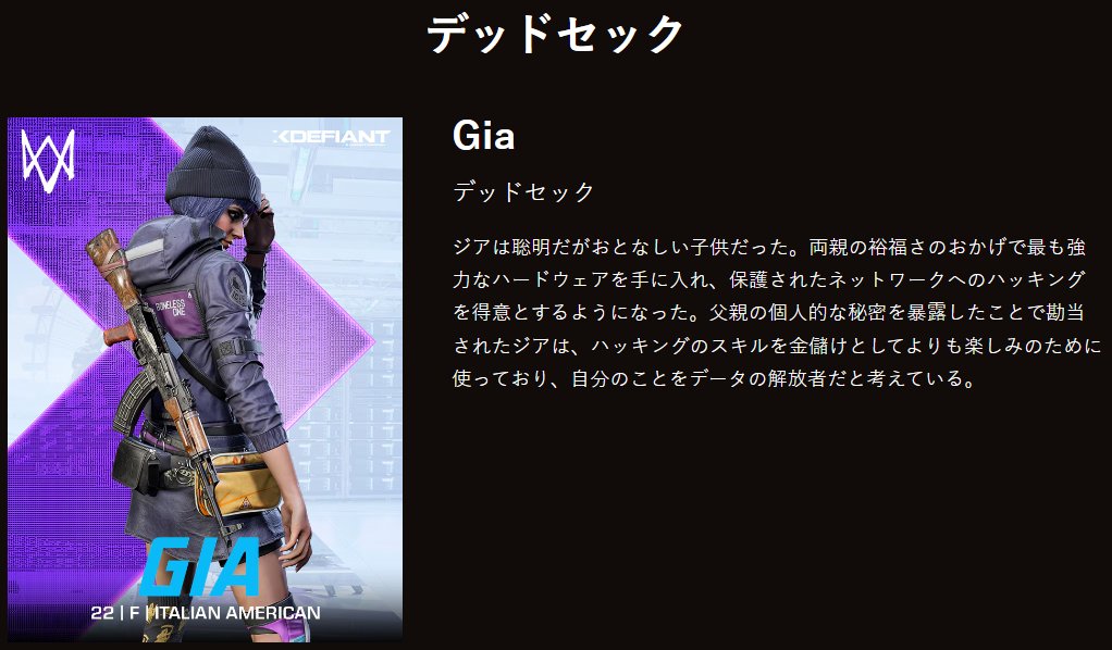 - 『エックスディファイアント』(XDefiant)の登場人物・キャラクター