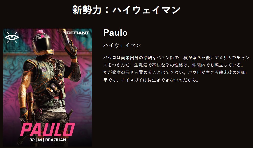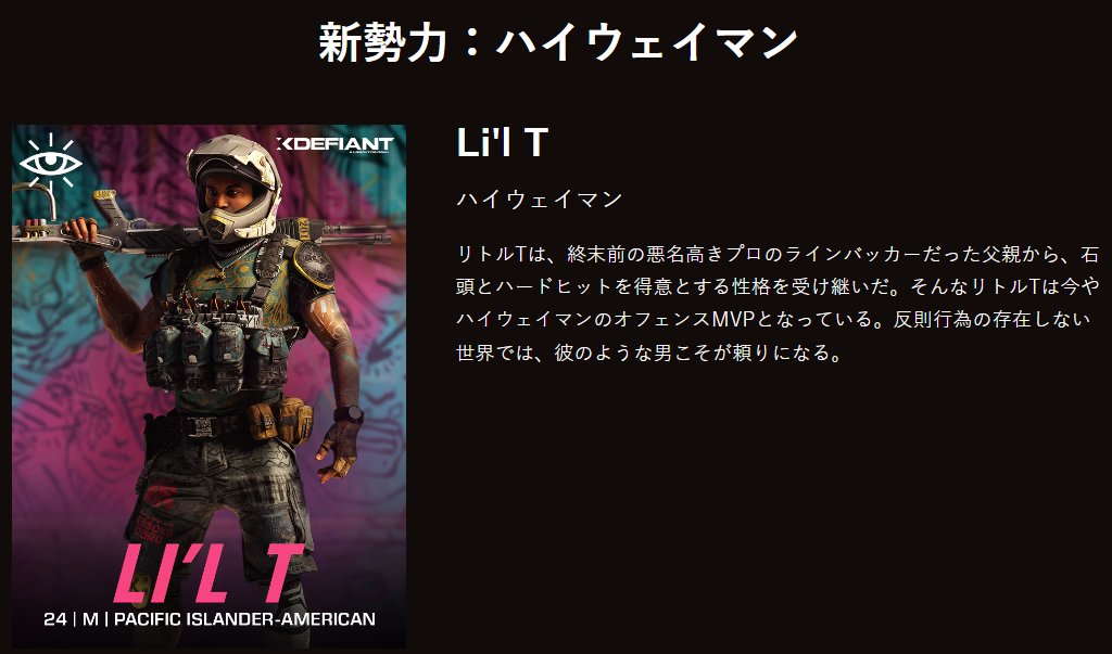 - 『エックスディファイアント』(XDefiant)の登場人物・キャラクター