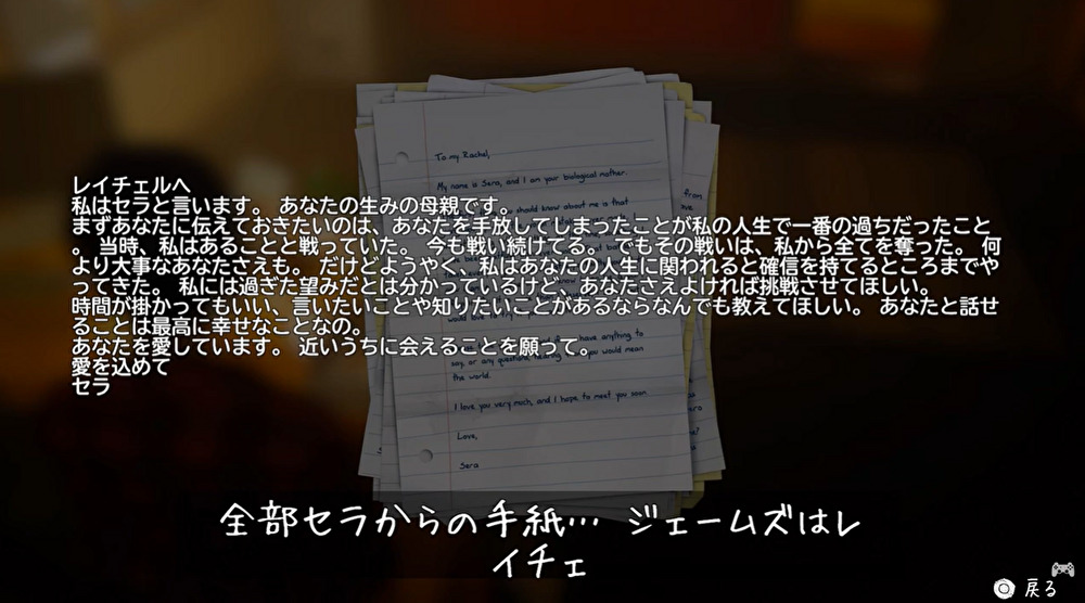 ジェームズが隠していたセラ(実母)からレイチェル(娘)に宛てた手紙の画像。