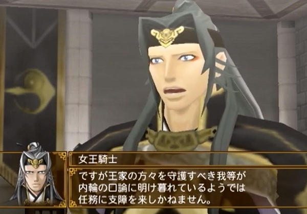 ファレナ女王国の女性騎士団に属している。太陽の紋章を使った富国強兵路線を進むゴドウィン家の思想に染まっており、忠実なしもべ的な存在である。父親も女王騎士だったが、8年前のアーメス侵攻の際に戦死している。自尊心が高く、常に苛立っている印象。精神的な余裕といったものとは無縁で、まだ生きているサイアリーズを戦死したと誤報告するなど、致命的なミスを重ねて信頼を失った。