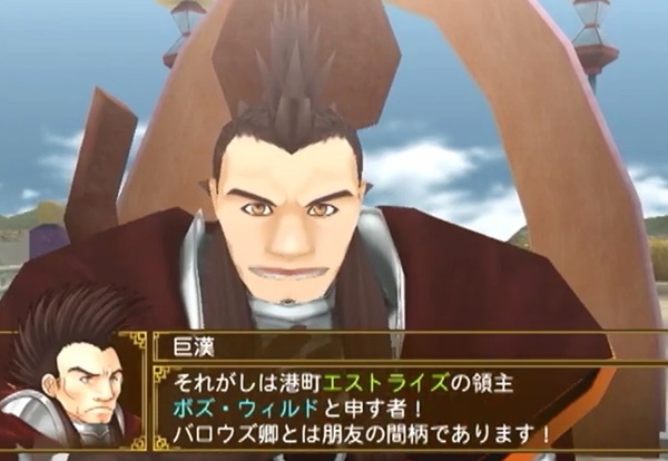 港町エストライズの領主であり、サルム・バロウズとは朋友の間柄。ファレナ女王国では名の知れた武人であり、ディルバ・ノウムと並び称されている。逃亡中の王子にいち早く声をかけたのがボズであり、人当たりのいい性格だが単純すぎる面もある。モヒカン頭が特徴で、王子軍の本拠地の名前を決める際にも「モヒカン城」を提案した。