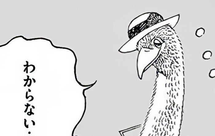- 東堂「生き残るのは…環境に適応して自らを変化させていく者でしょうな。」/エルフ「適者生存では生存に不利な進化を説明できない。たとえばクジャクの尾羽とかね。」