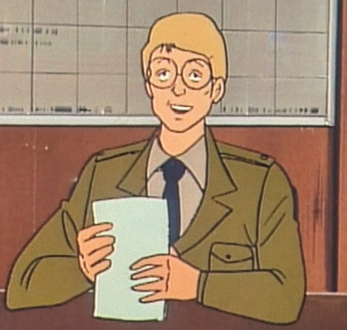 カルメル政権下で編成された「デロイア治安軍」大尉。第75話で登場。意地を見せたカルメルの命令で、ラコックが動かした地球連邦軍の「太陽の牙討伐隊」と対峙する。撤退を拒否する連邦軍指揮官「シュミット」を相手に、一歩も引かない気迫を見せる。そのままにらみ合いが続き、一触即発の危機が続くが、ラコックの急死に伴いシュミットは急遽撤退する。その後太陽の牙に「1時間以内に武装解除して離脱」するようにとのカルメルの伝言を伝える。太陽の牙が移動を始めた時は浮き足立つが、その後ダグラムが爆破されたことを察して敬礼で見送る。