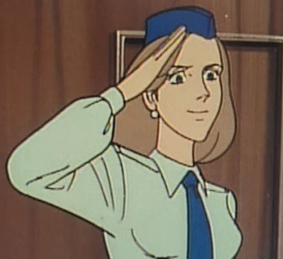 第2話でドナンがデロイアに向かうために登場したシャトルの添乗員。軍属で階級は中尉。機長からは「我が第3空軍の名花」と紹介されている。地球の最高権力者であるドナンの世話をさせるために、能力だけで無く容姿も選りすぐりの女性士官を選抜してきたようだ。しかし搭乗機はバスクの襲撃により擱座してしまった。事件収束後ドナンは同型の代替機でスペースポートに向かっているが、彼女がその機に移乗したのかは不明。