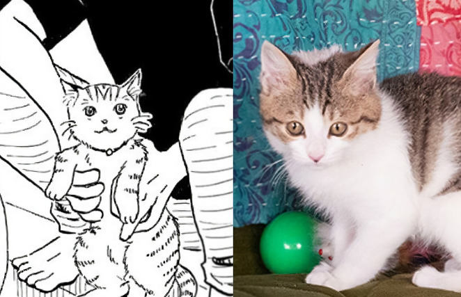 直達が学校に行く途中の河川敷に捨てられていたのを拾ってきて、シェアハウスで飼う事になった猫。