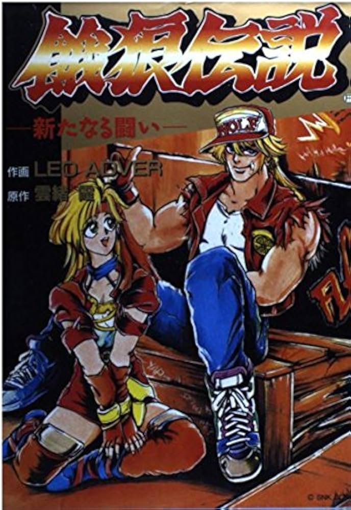 本作品の漫画版が存在し、『餓狼伝説』(細井雄二著、全2巻、講談社)や『餓狼伝説 新たなる闘い』(原作・雲緒霞、作画・LEO ADVER、全1巻、新声社)等がある。特に『餓狼伝説 新たなる闘い』はギースとの戦いからの後日談を描いたオリジナルストーリーで、オリジナルキャラクターのメディア・クメール(ヒロイン)が登場したり、サイボーグ化したギースが現れたりする。またテリーが着用していたジャンパーがギースにより破られベスト状になっていたり、彼がまだ未完成の超必殺技・パワーゲイザーを繰り出す展開が描かれたりと次回作『餓狼伝説2』のプロモーション的な要素がある。
