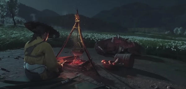 体力や気力を回復させるため、星空の下で野営をすることができる。火を起こして焚火をするのが基本で、戦いに備えて休んだり、三味線を弾いたり、簡単な料理が可能。焚火にあたっていると、商人が物を売りに来たり、仲間がやってきて装備をグレードアップしてくれることもある。
