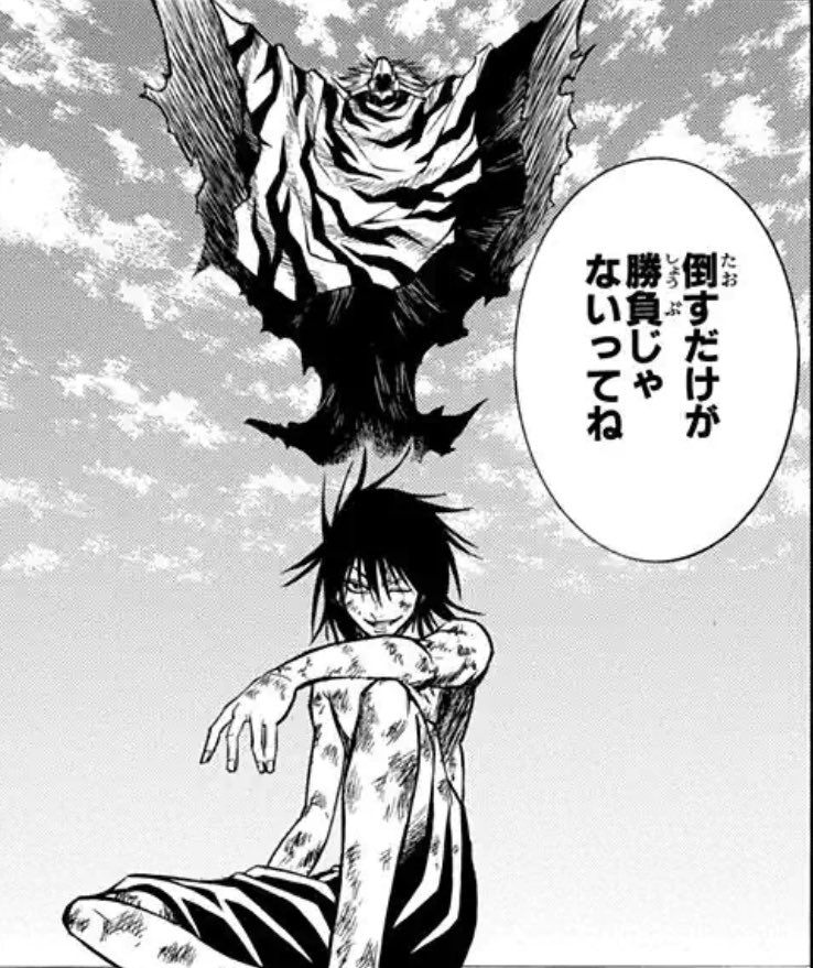 兜の心の中にいる存在。牛のような角の生えた仮面に、虎柄のマントを纏ったような姿をしている。台詞は全てひらがなとカタカナが入れ替わっており、表記も独自のフォントが使用されている。4回目のゲームにおいて、兜がドルキの爆撃からアゲハを庇って昏睡状態に陥っている際、兜の精神世界で初登場した。彼の眼に映る「死の脅威」とされる光を祓い、災難から逃れる能力「弱者の(チキンソウル)パラダイム」を持っている。その光を集めて相手に叩き込み、「死の脅威」を相手に返すことも可能である。