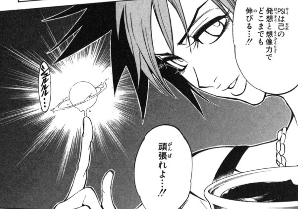 大気を圧縮変換したPSIブロックを空間に造りだす空間操作系PSI「マテリアル・ハイ」というPSIを使う。立方体や刃状など、様々な形で空中に固定ができるブロックを作り出し、足場や防壁、罠などに応用する。さらに「固定解除(フォールダウン)」の合図でブロックを落下させるなど、重量を活かした攻撃もできる。