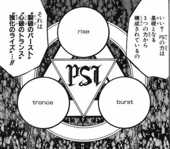 作中に登場する、いわゆる超能力の総称で、瞬間的に全脳細胞を活性化させて発揮する「思念の力」を源にしている。基本的には「裂破のバースト」「心波のトランス」「強化のライズ」の3種類の力で構成されており、PSIの力を操る者はサイキッカーと呼ばれている。