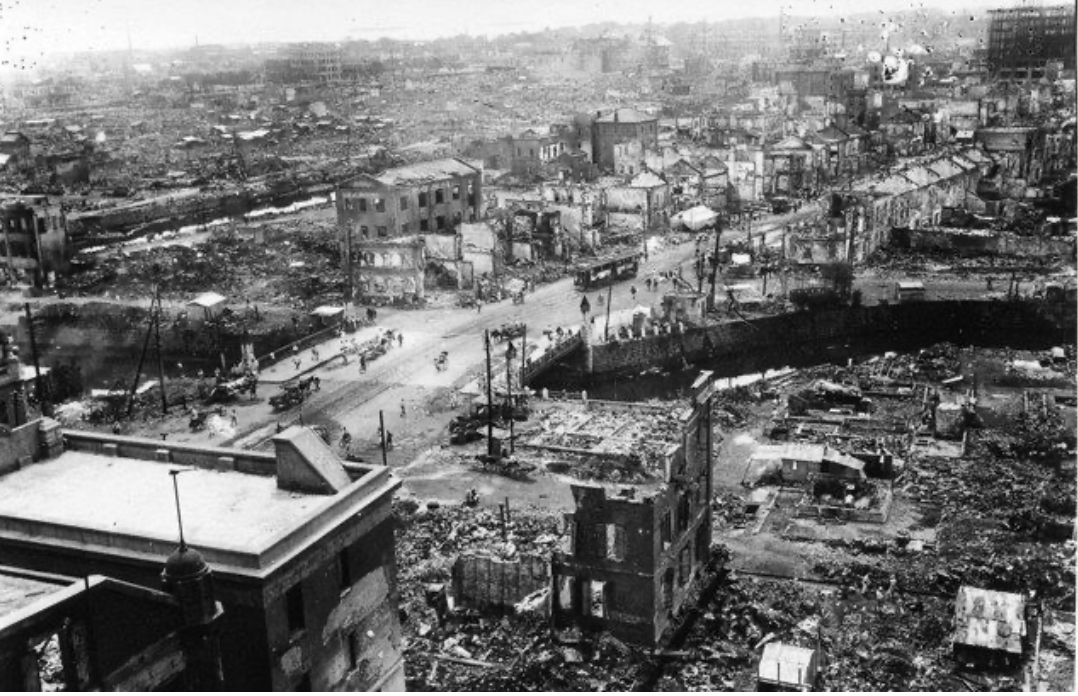 かつて東京が経験した大震災が関東大震災である。これは1923年(大正12年)9月11日11時58分に発生した最大マグニチュード7.9と推定される地震である。関東圏を直撃し、多くの死傷者を出した。当時はまだガスが配備されておらず、人々は七輪で飯を作っていた。地震発生が昼時であった為、この時に使用していた火が家屋に引火し、かなりの規模の家々を焼いている。