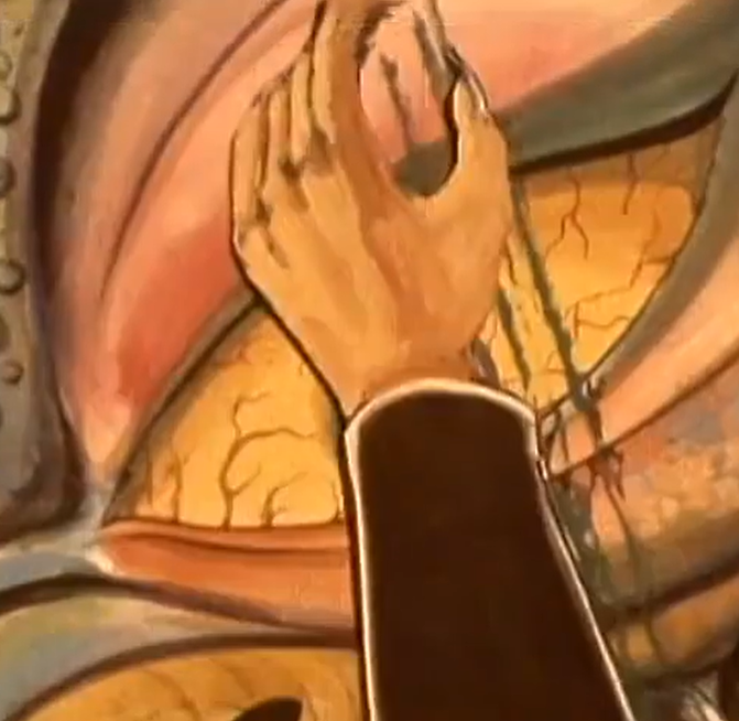 『神の左手悪魔の右手』とは、楳図かずお原作のホラー漫画。『ビッグコミックスピリッツ』にて1986年から1988年まで連載された。メディアミックスとして2006年に実写映画版が公開されている。数多い楳図作品の中でも圧倒的なスプラッター・ゴア描写が展開されることで知られており、多くの読者に衝撃を与えたといわれている。同作品は、主人公の少年・山の辺想を狂言回しにして、彼の周辺で起きる恐怖現象や惨劇を描いたオムニバスホラー漫画である。