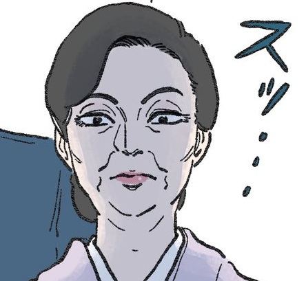 社長の母。着物姿で非常に迫力のある女性。厳格な雰囲気で、第一印象では怖い印象を与える。社長いわく筋金入りの犬派。コップを倒してしまい水をこぼしたプンちゃんに対し、「悪い子にはお仕置きが必要」と言いつつも、赤ちゃんを可愛がるような口調と共に顔を両脇から挟んでガシガシと力強く撫でるという独特の可愛がり方をする。撫でる力が非常に強いため、撫でられた後は毛がボサボサになり、プンちゃんもスケキヨも魂が抜けたように呆然としてしまう。そのため意図せずプンちゃんとスケキヨに恐怖を植え付けており、2匹にとってはトラウマ的存在でもある。