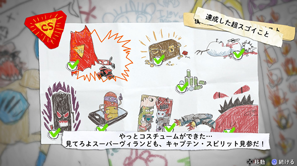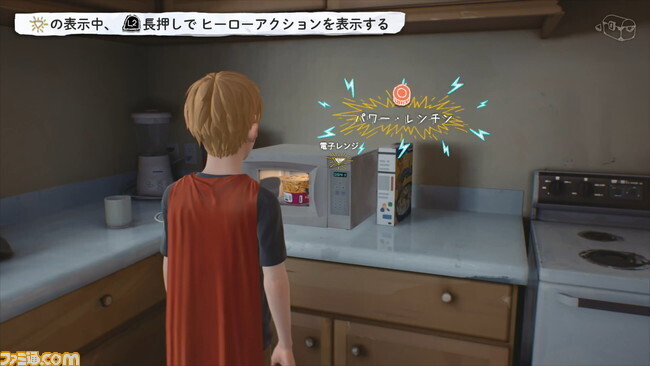 ヒーローアクションは、物語の没入感を支えてくれる本作独自のシステムだ。特定のポイントでR1ボタンを長押しか連打すると、画面上に際立った選択肢が出現し、選択することでクリスはキャプテン・スピリットとしての特殊な行動を開始する。アクションの幅は広く、特定の条件を揃えなければ発動しないものから、物語の進行には一切関与しないものまで多岐にわたるのが特徴。何が起きるか予測できない不確実性こそが、プレイヤーに童心のような昂揚感を与えてくれる。