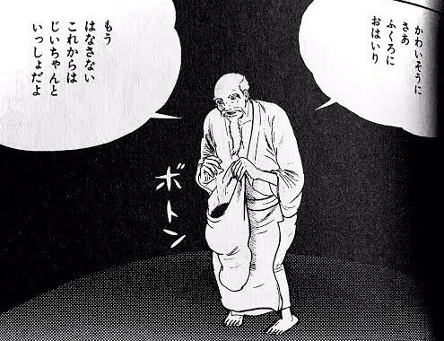 一男(かずお)の祖父は優しい人物で、孫を溺愛していた。死亡後にひ孫の佳司がハト笛で彼を呼ぶと、サンタクロースのように沢山のおもちゃを佳司に与えた。佳司のことを一男だと思い込み、ある晩佳司の頭部を捥ぎ取って白い袋へ入れると何処へと消えて行った。