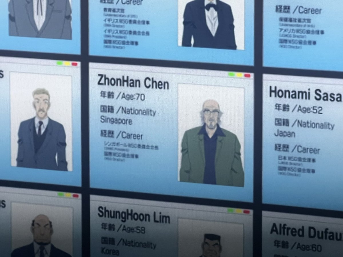 - WSG協会メンバーの一覧に名を連ねる『劇場版名探偵コナン 紺青の拳』の登場人物ジョンハン・チェン