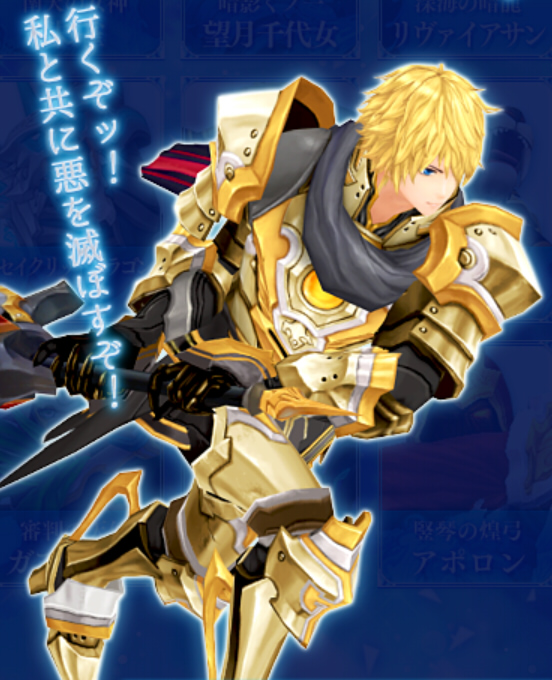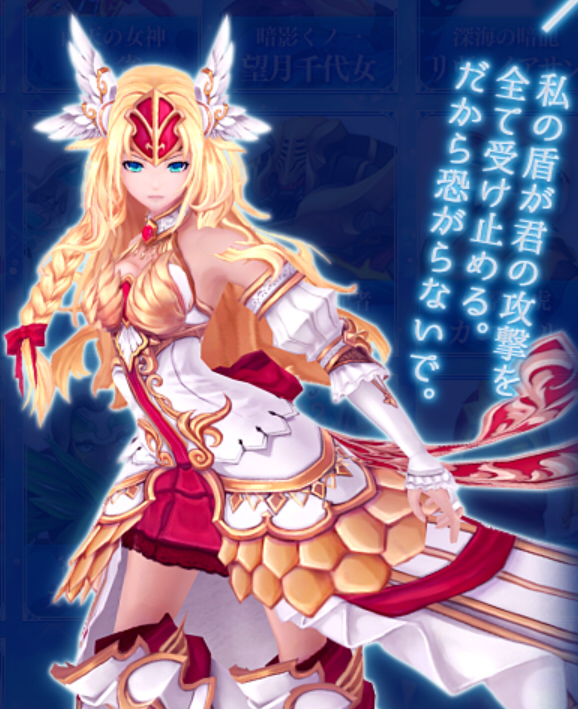 アテナは知性と芸術、そして戦略を司る戦場の女神である。叡智に富み、武勇に長けた彼女は、強い心と平和を愛する優しさを併せ持ち、古くから人々に神の手を差し伸べてきた。アテナは【アイギス】と呼ばれる神の盾を携えている。右手の銀の聖槍は敵の防御を貫き強大なダメージを与え、左手の盾はあらゆる攻撃を完璧に防ぎ切る。また、聖槍に宿る魔力で仲間の受ける傷を軽減させるなど、勇猛に突き進む者への気遣いも忘れない。この揺るぎない信念こそが、彼女を勝利の女神たらしめているのである。