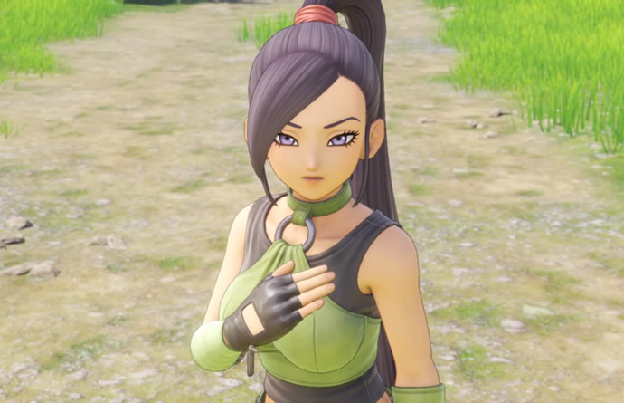 涼し気な目元のクールな美貌を持った女性で、グラマラスなプロポーションも魅力的なキャラクター。職業は武闘家で、比類なき破壊力を誇る豪脚の一閃をはじめ非常に高い攻撃力と、自身のルックスを最大限に生かした「おいろけ」スキルの使い手でもある。