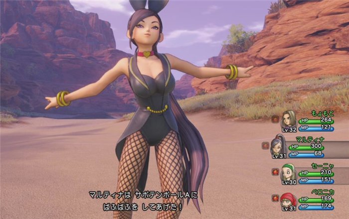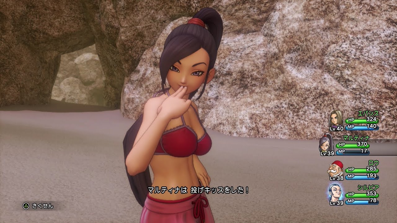 マルティナとは、2017年にスクウェア・エニックスより発売されたコンピュータRPGのゲームソフト『ドラゴンクエストXI』の登場人物。長いポニーテールとヘソ出しルックが特徴の女性武闘家で、高い攻撃力を誇る。自身の美貌を駆使した「おいろけ」スキルの使い手でもあり、本作から登場する新技「サキュバスウィンク」は非常に強力な必殺技でもある。正体は16年前に死亡したとされているデルカダール王国の王女で、主人公との旅で徐々に王女としての矜持を取り戻し、人間的成長を遂げる姿で人気を博した。